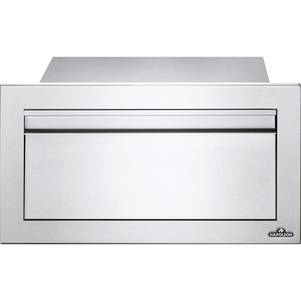 Creating your custom grill island has never been easier with Napoleon's Built-In Components. Every great outdoor kitchen needs storage; this stylish single drawer is 18" x 8" and features stainless steel construction, soft closing hardware, seamless trim, and anodized aluminum handles. Perfect for storing your favorite Napoleon Accessories, spices, and anything else you need for outdoor cooking