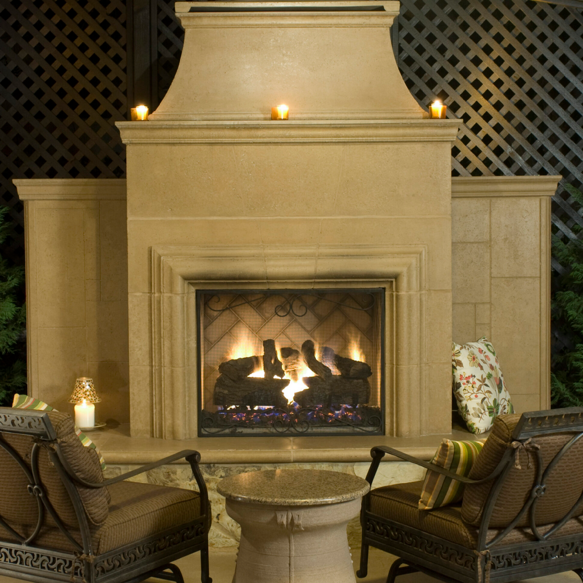 This classic outdoor fireplace combines timeless design with modern functionality, providing both warmth and ambiance for any outdoor gathering. A hearth-style option is also available for added customization.