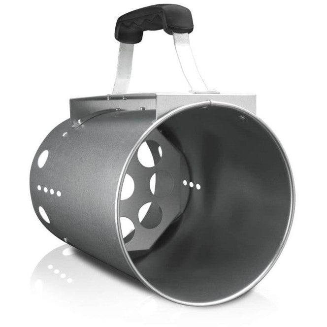 The Charcoal Starter is a quick, safe and efficient way to start charcoal for your charcoal barbecue grills. For outdoor use only, this Charcoal Starter uses a chimney effect that concentrates heat to light the charcoal. Made from aluminized steel with a cool-touch handle (although, grill gloves are recommended when hot) for long-lasting use. Have charcoal hot and ready to use in minutes, the Charcoal Starter holds enough charcoal to fill most charcoal barbecue grills. To use, fill the underside of the Charcoal Starter with loosely crumpled newspaper or paper towel. Turn the Charcoal Starter over and fill the main chamber with as much charcoal as needed for your cook - a few large chunks of hardwood lump charcoal for smoking, up to a full load for some high heat searing. Once filled, light the paper on fire through the bottom vents of the starter. Allow the paper to burn off, which ignites the bottom coals. The heat from the bottom coals rises igniting the rest. Using heat-resistant gloves, lift the Charcoal Starter by the handle and pour the lit charcoal into your barbecue grill. Clever, multifunctional and easy to maintain, every kitchen benefits from the addition of a Napoleon barbecue accessory. Our accessories provide you with the essentials to create delicious grilled food and then some to enhance your cooking arsenal with a wide variety of creative additions to broaden your culinary horizons