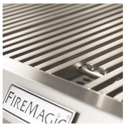 Known for crafting American-made premium grills for over 75 years, Fire Magic is dedicated to providing you with a luxurious outdoor cooking experience. The Aurora A430I built-in natural gas grill features 432 square inches of premium cooking space wrapped in a stylish, modern package that is built to last. It features 304 stainless steel construction for lasting quality, and sleek styling with a seamless control panel that comes with comfort touch control knobs and LED backlighting. The double walled, spring assisted hood opens 90 degrees for easier access and more efficient exhaust. It features an integrated analog thermometer with an angled bezel for easier viewing. Inside, this grill features two cast stainless steel E-burners, made with 1/4-inch thick walls and precision porting, that combine for 50,000 BTUs. Reliable hot surface ignition always lights your burners where others might fail. Flash tubes serve as a backup. Flavor grids sit above the burners to spread heat evenly and protect the burners from debris and grease. The cooking surface consists of the patented Diamond Sear cooking grids. These grids feature a matte, non-stick surface, and a trapezoidal shape that efficiently transfers heat from the burner to the wide surface of the cooking grids. The warming rack above can be adjusted and moved out of the way when not in use. For night time grilling, the interior of the grill is lit by two halogen lights. A disposable drip tray system makes cleanup a breeze and reduces the chance of grease flareups. Solid, raised hangers line the sides and back of the grill for a seamless look when placed into a counter top or island. A 120 VAC power source is required for ignition, as well as for the lighting functions. With many of the same premium features as the Echelon series of grills, the Aurora series from Fire Magic is the perfect centerpiece for your luxury outdoor kitchen.