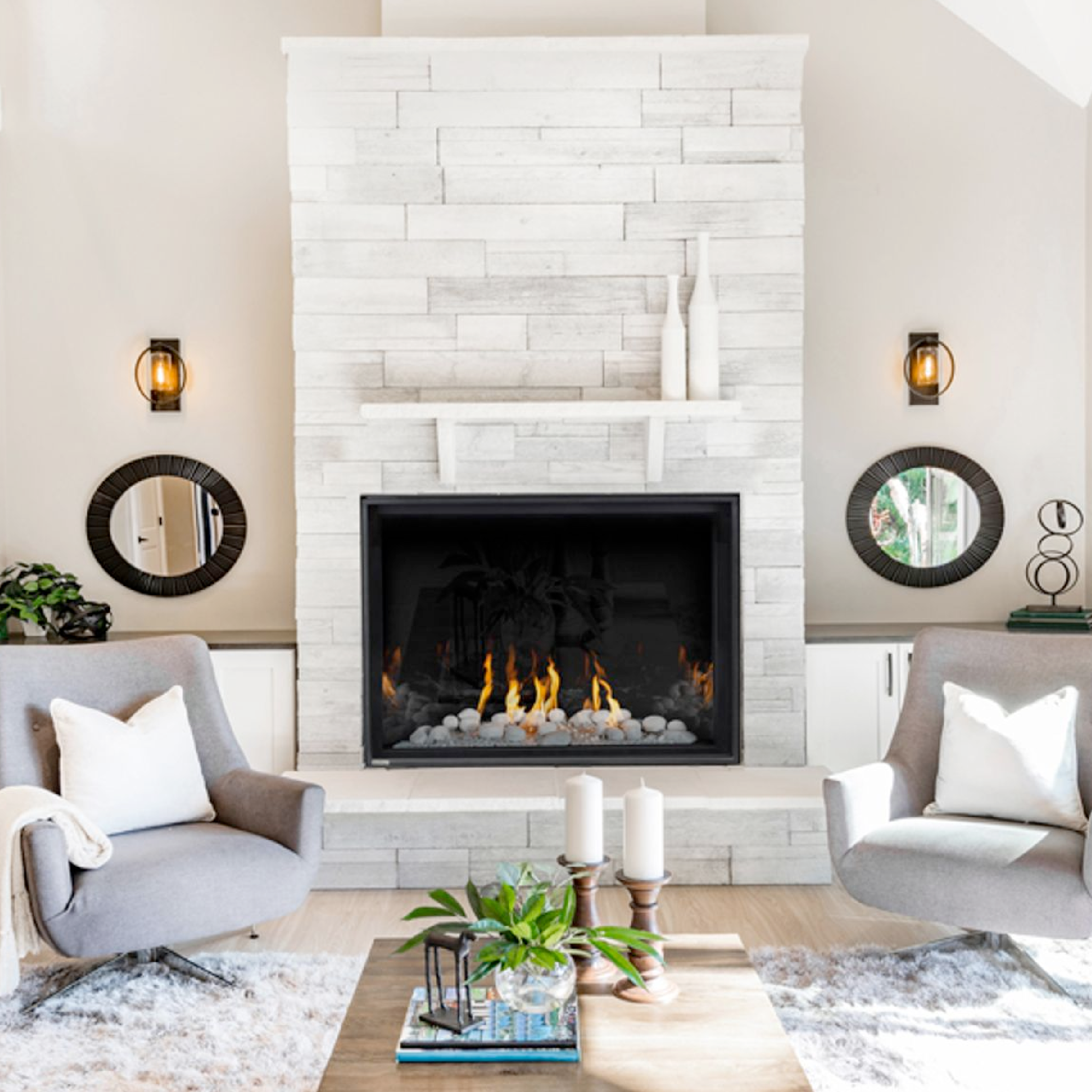 With Montigo’s brand new universal burner, the Montigo Delray Square Direct Vent Gas Fireplace - 46" gives you the ability to redesign your fireplace any time you want! The concealed universal burner system is designed to ensure a tall and robust flame pattern that fills the firebox when paired with any Montigo Delray Square Direct Vent Gas Fireplace - 46" compatible log set or contemporary media option.