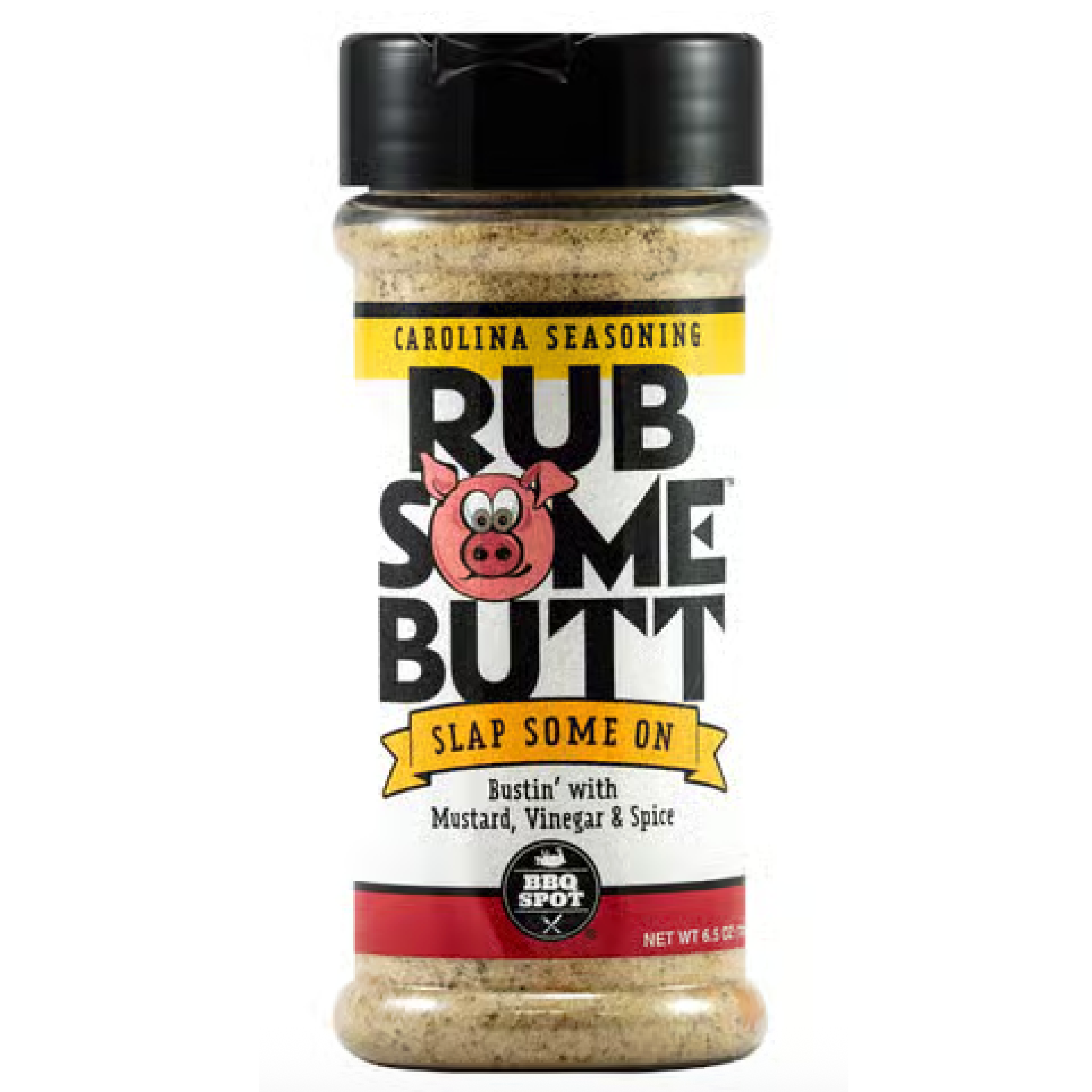 Rub Some Butt Carolina Style BBQ Rub by BBQ Spot is a mustard and vinegar-based rub that makes a perfect start to your Carolina Style BBQ. Formulated for pulled pork or chicken perfection, this combination of seasonings has hints of brown sugar, onion, garlic and a bit of red pepper.