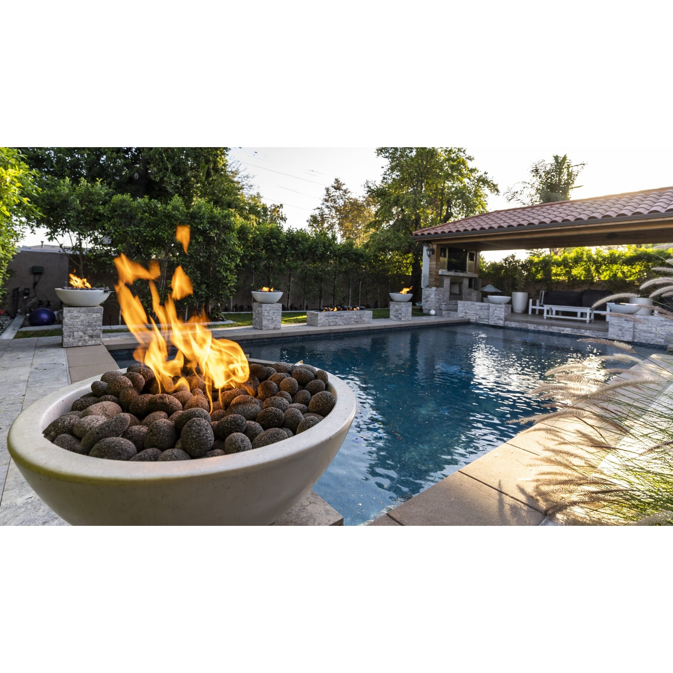 The Outdoor Plus Sedona Concrete Narrow Ledge Fire Pit provides an elegant fire pit that will liven up your outdoor space. This fire pit is individually handcrafted in the U.S.A. from glass fiber reinforced concrete (GFRC). This durable material is stronger and 50% lighter than regular concrete. It allows for a long-lasting product because the glass fibers prevent rust and cracking. Additionally, the color is cast throughout the product ensuring it will not peel or chip off. You can choose a regular finish, a metallic finish that reflects in the light and mimics the look of an anodized finish, or a rustic finish that has a textured appearance on the surface. Because of its handmade nature, slight variations in color and texture will occur to provide a truly unique product. Each fire pit features an LC Certified system, fire pan, 304 stainless steel burner, key valve, key, hoses, and lava rock. Fire glass is available for upgrade. Choose from five different ignition options: Match Light with or without a flame sensor, Spark Ignition, and Electronic Ignition in either 12V or 110V. The Smart Weather Electronic Ignition System has been tested in rain, snow, and 55 mph winds to ensure long-lasting durability and will reignite if blown out due to wind. The compact system can be wired by your local electrician to be controlled by a pool controller, remote control, or home automated systems to provide effortless control of the fire feature.