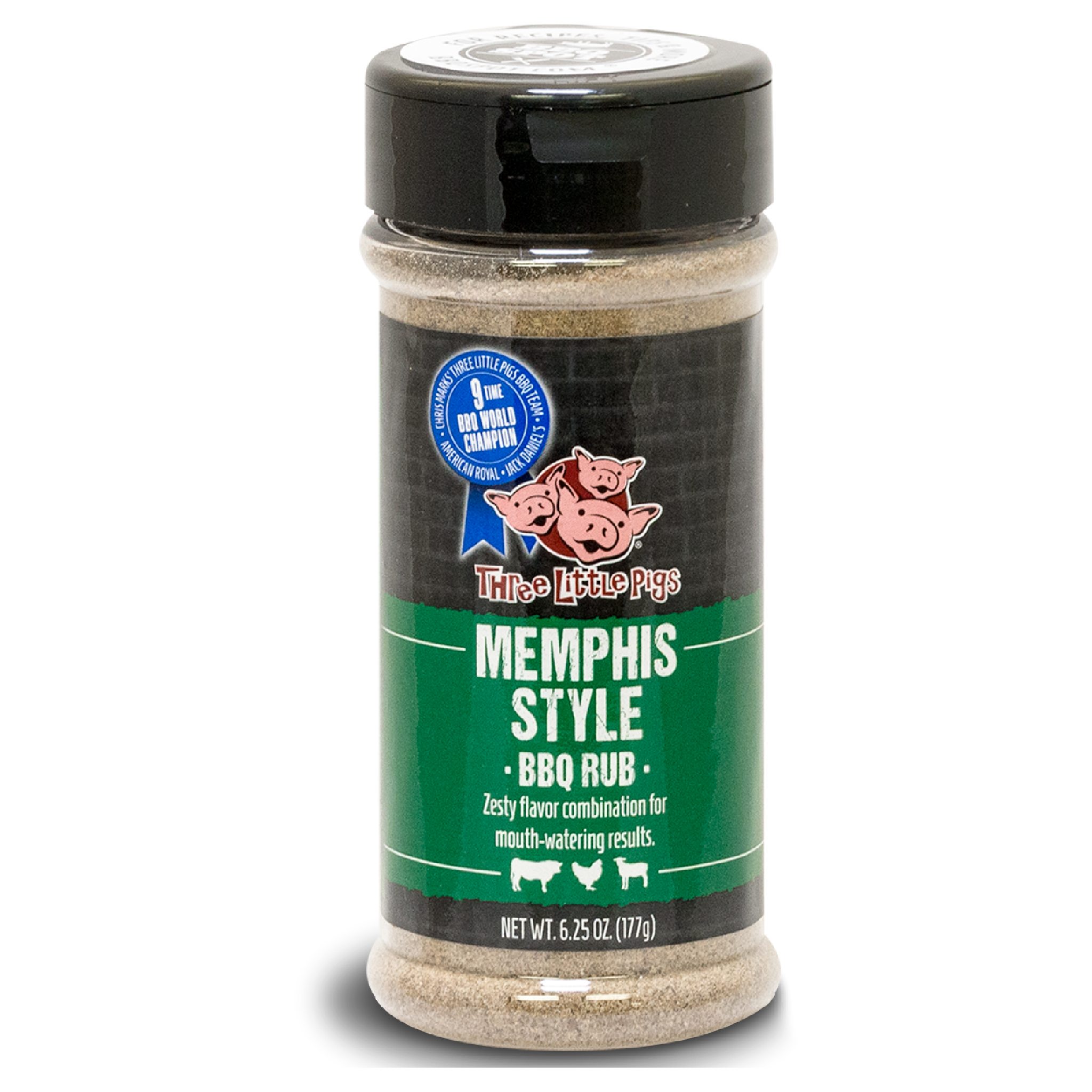 Three Little Pig’s BBQ Memphis Style BBQ Seasoning was developed for beef, chicken and is especially good on brisket, thick steaks, prime rib, ribs, tri tip,pork ribs whole chicken. This Memphis Style Seasoning works well on a very hot grill or smoker, since it has little sugar. Memphis Style gets its distinctive flavor from a healthy dose of fresh ground black, white, and red pepper topped off with a hit of Worcestershire powder, coarse kosher salt, and other spices. Memphis Style is a natural on hamburgers and pork chops and makes a great table condiment when you desire to create an extra peppery flavor.